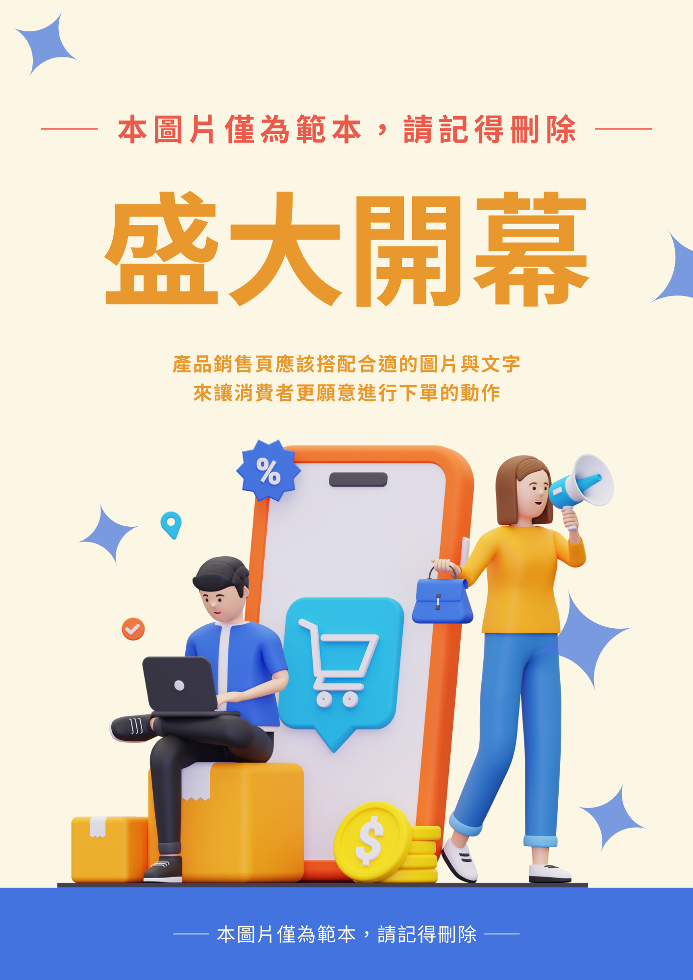 特價中 🔍 簡單商品範例 (熱門 – 無圖庫)NT$999 原始價格:NT$999。NT$699目前價格:NT$699。 這是一款展示用的範例商品,為展示電子商城內容而設計,展示如何進行清晰簡單的商品描述,並且以條列形式說明其主要優點。 商品特色: 高品質材質:採用優質材質製作,保證產品耐用且安全。 實用設計:設計符合現代需求,無論家庭或辦公使用都能發揮出最佳效果。 多功能應用:適合多種場景使用,滿足您的不同需求。 環保選擇:產品製造過程考慮環境影響,使用可持續材料。 時尚外觀:簡約且時尚的外觀設計,適合各種風格空間。 簡單商品範例 (熱門 - 無圖庫) 數量 加入購物車 描述 這邊是你可以放些商品圖片或是文字介紹的區塊 請記得將以下這些內容刪掉換上專屬於你的產品資訊 相關商品 特價中 可變商品範例 (熱門) NT$999 原始價格:NT$999。NT$699目前價格:NT$699。 選擇規格 此產品有多種款式。 可在產品頁面選擇選項 特價中 簡單商品範例 (熱門 – 有圖庫) NT$999 原始價格:NT$999。NT$699目前價格:NT$699。 加入購物車 特價中 組合商品範例 (熱門) NT$699 查看商品 特價中 外部商品範例 (熱門) NT$999 原始價格:NT$999。NT$699目前價格:NT$699。 馬上購買